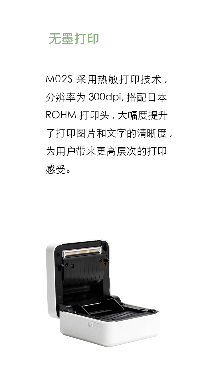 M02S支持15mm、25mm、53mm三种打印尺寸,纸仓内部还配有固